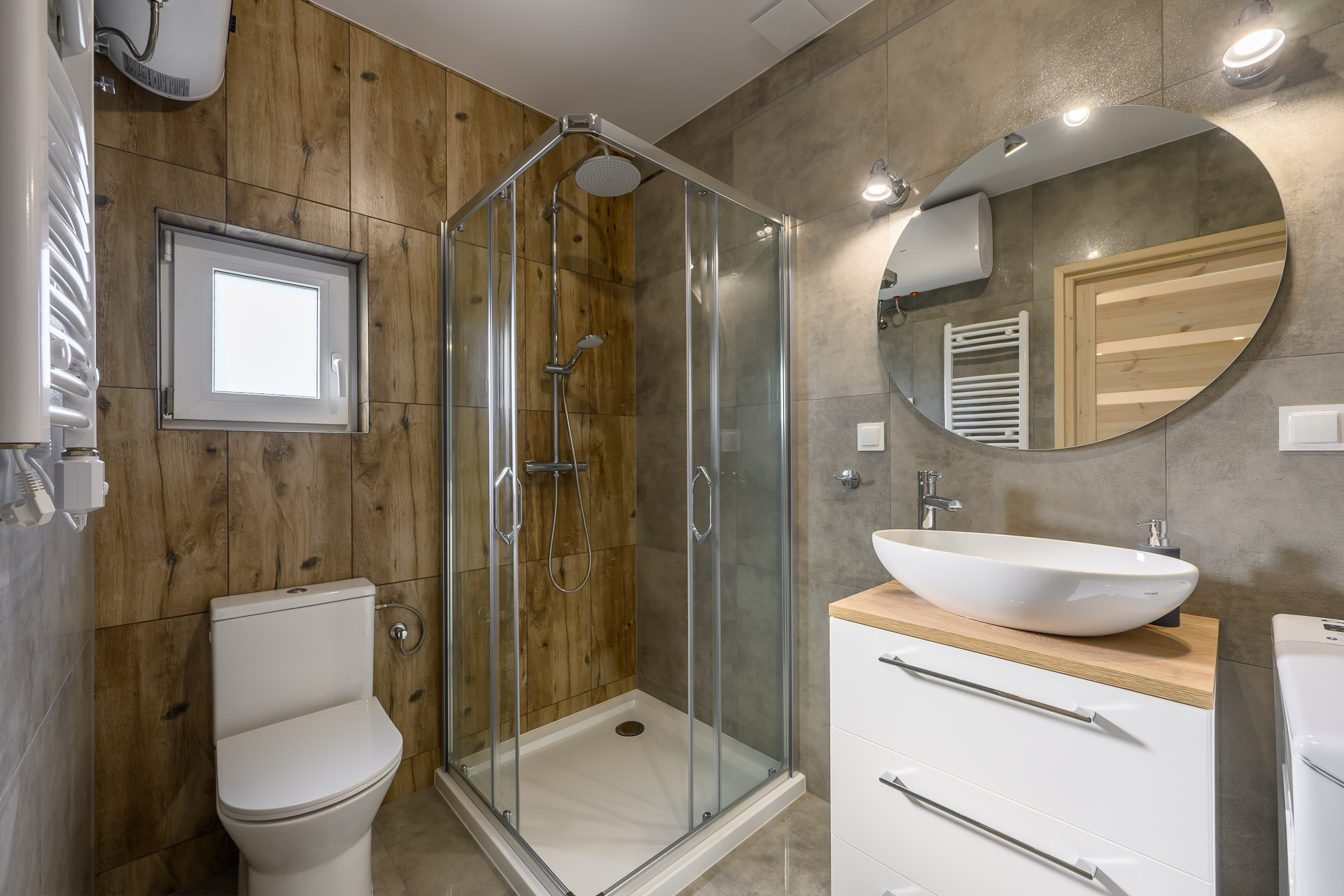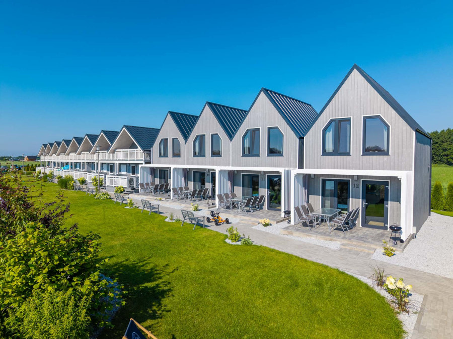 Każdy domek Osady Skandia posiada trzy oddzielne sypialnie, duży taras z zestawem wypoczynkowym i w pełni wyposażoną kuchnię. Klimatyzacja w każdym domku zapewnia ochłodę w czasie upałów oraz ciepło w chłodniejsze dni. Wokół obiektu znajduje się dużo zielonych terenów, gdzie rodzinnie można spacerować lub wybrać się na rowerową przejażdżkę.